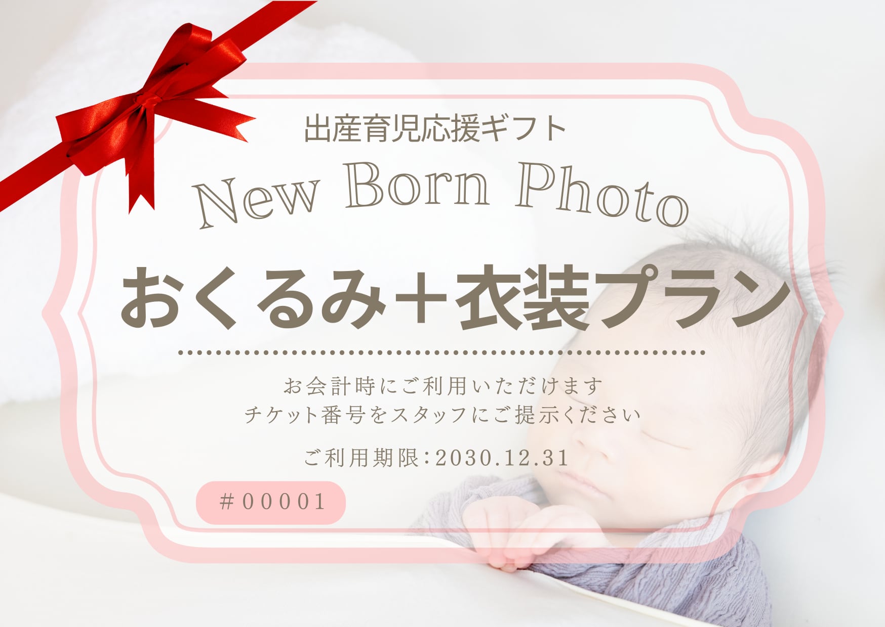 【出産育児応援ギフト】ニューボーンフォト(おくるみ+お衣装プラン)