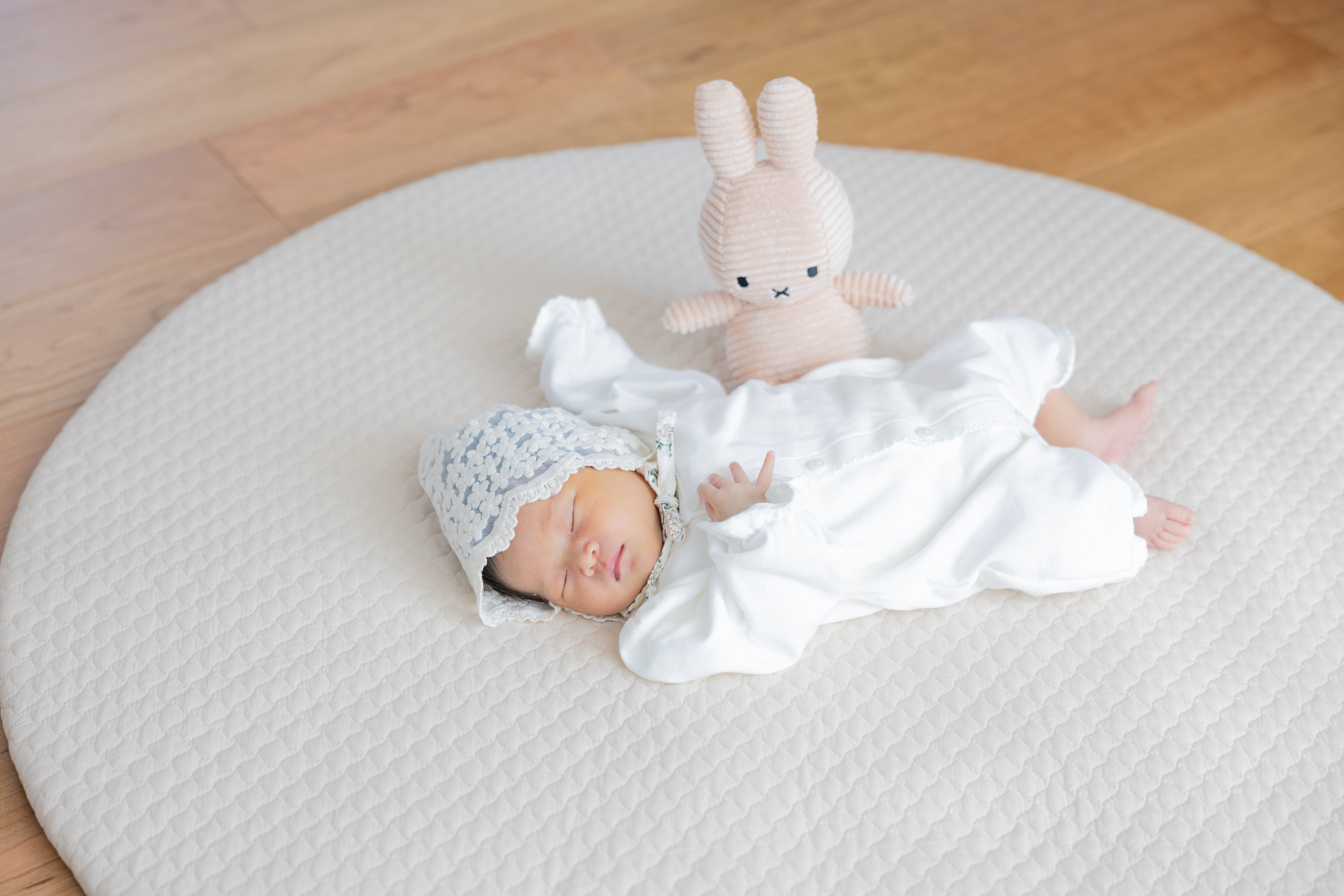 「一生に一度の感動を、余すことなく形に残す最高峰のギフト」 おくるみ、お衣装、そして日常の自然な姿を残す「ナチュラルニューボーンフォト」まで。2時間半〜3時間かけて、赤ちゃんとご家族のストーリーを丁寧に紡ぐ、当店で最も贅沢なプランです。