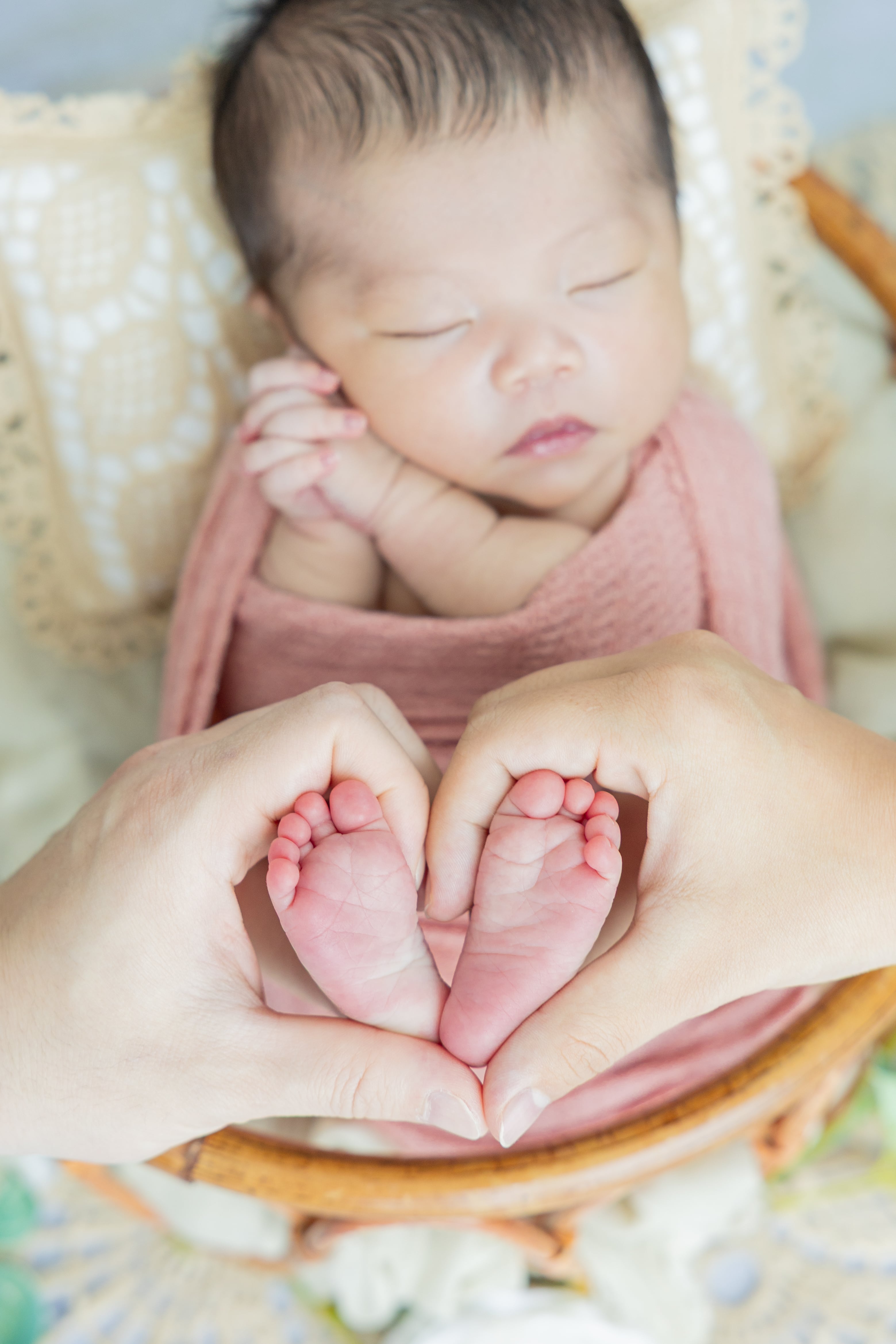 おくるみ撮影: 王道の可愛さ(ハート、ちびクマ、クラウン等のアイテム使用可)